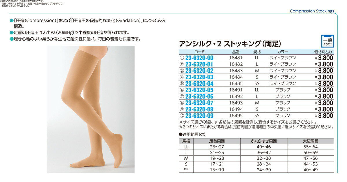 アンシルク・2(ストッキング・両足) 18484(S)ライトブラウン品番 23-6320-031入り 一般 専門科目 フットケア・ネイルケア・皮膚科 定価\3800 JAN 4900070184845 ●定価¥3,800円(税別)●商品説明●「圧迫(Compression)」および「圧迫圧の段階的な変化(Gradation)」によるC&G構造。