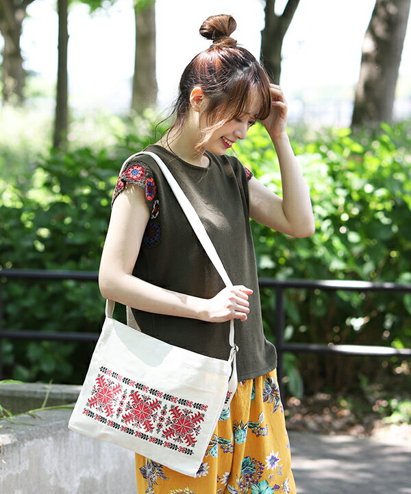 【SUMMER SALE】 ショルダーバッグ レディース 斜めがけ ワンショルダーバッグ ワンショルダー 軽い クロスステッチ A4 スナップボタン バッグ キャンバス 春 夏 エスニック アジアン ネイティブ チチカカ公式 TITICACA / クロスステッチショルダーバッグ zisccd7089