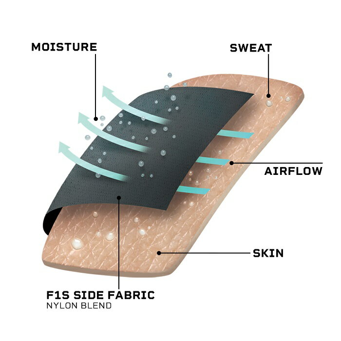 ●肌の表面に付着した汗を透湿機能で排出し涼しくドライな使い心地。